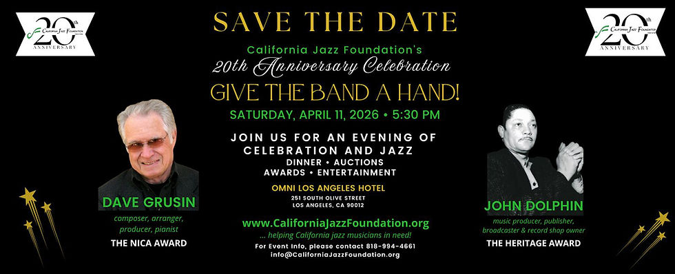 California jazz musicians in need. All contributions benefit the California Jazz Foundation